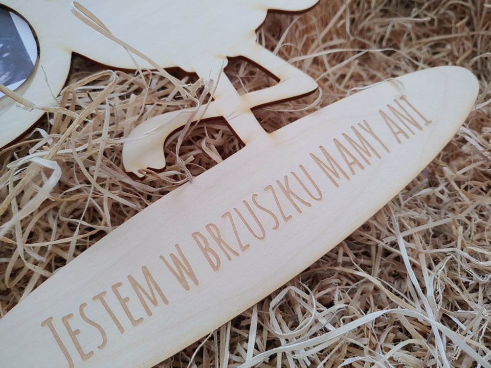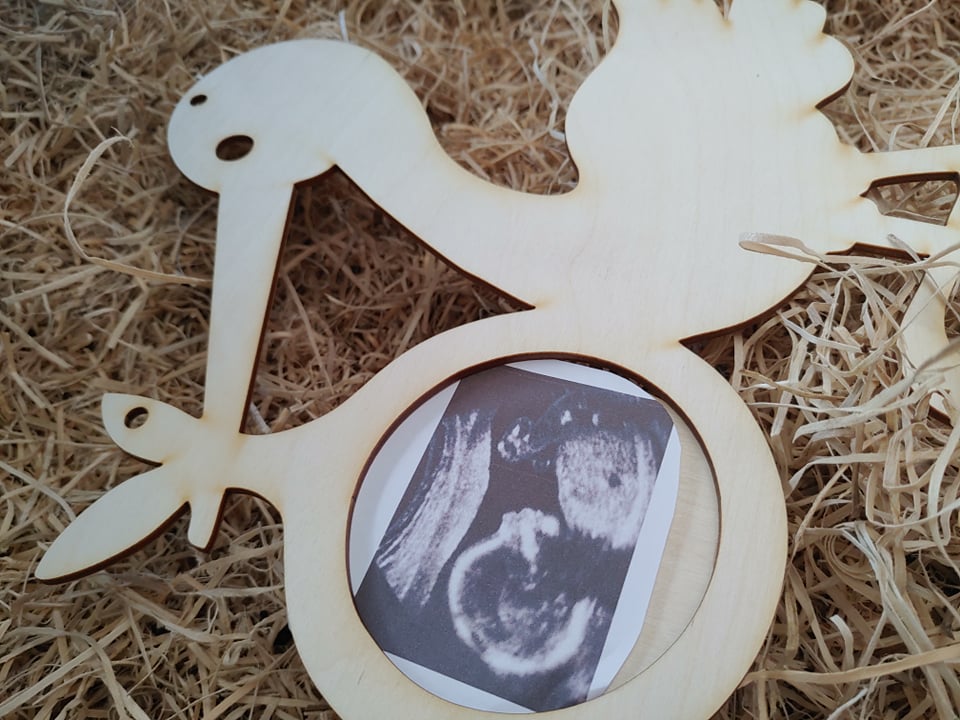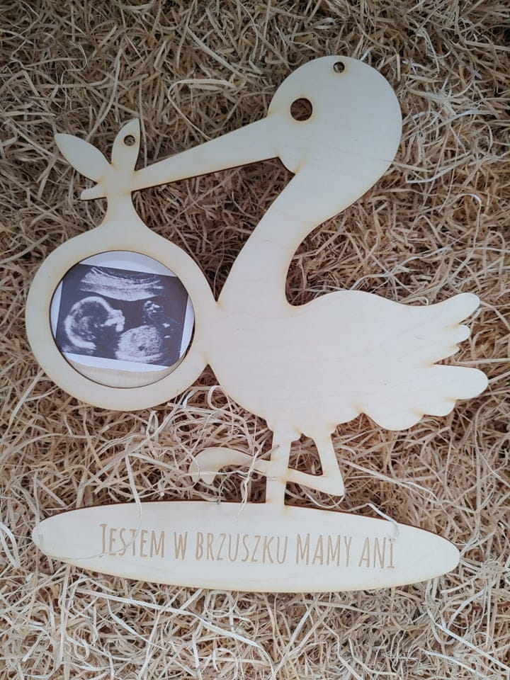 Ramka, sklejka, personalizacja, bocian na zdjęcie usg
