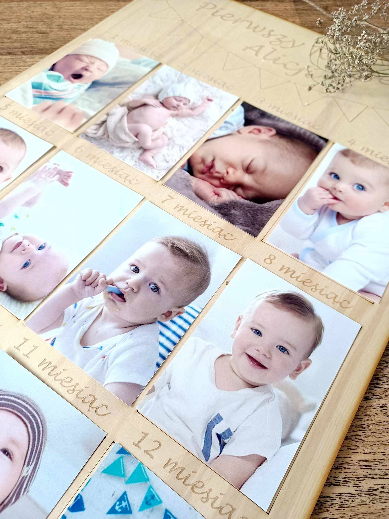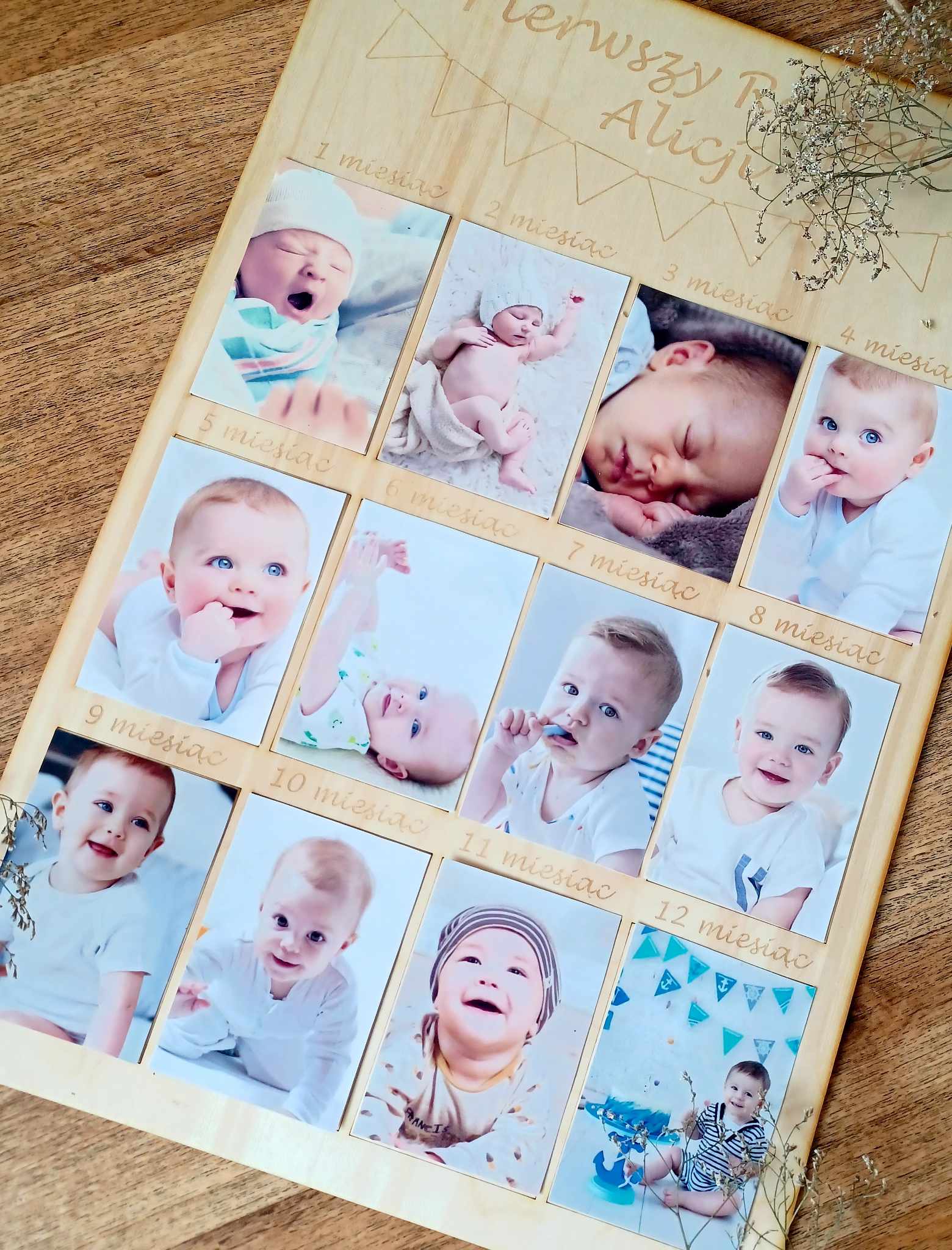 Tablica-ramka na 12 zdjęć z pierwszego roku Maleństwa.