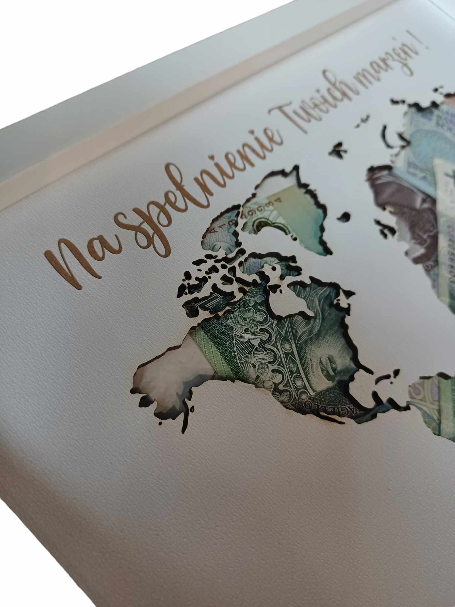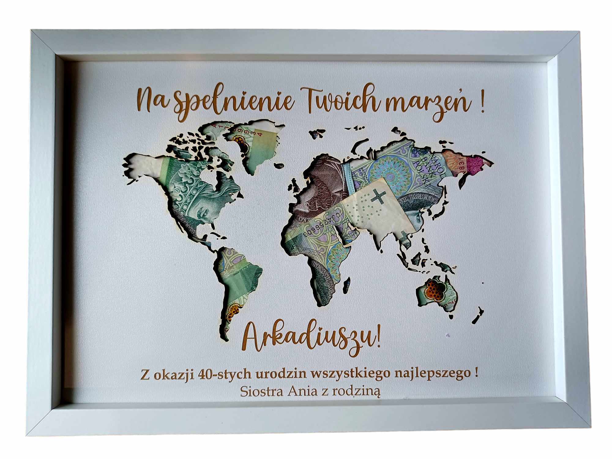 Ramka mapa świata/ ramka na pieniądze/ Twój tekst - prezent 18 20 30 40 50 60