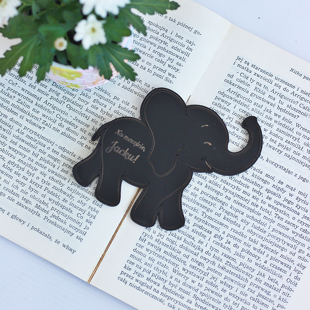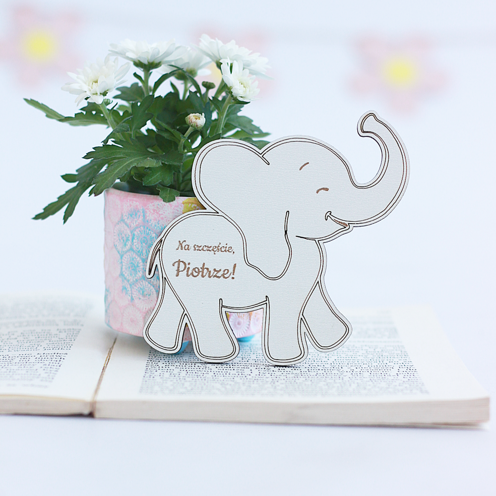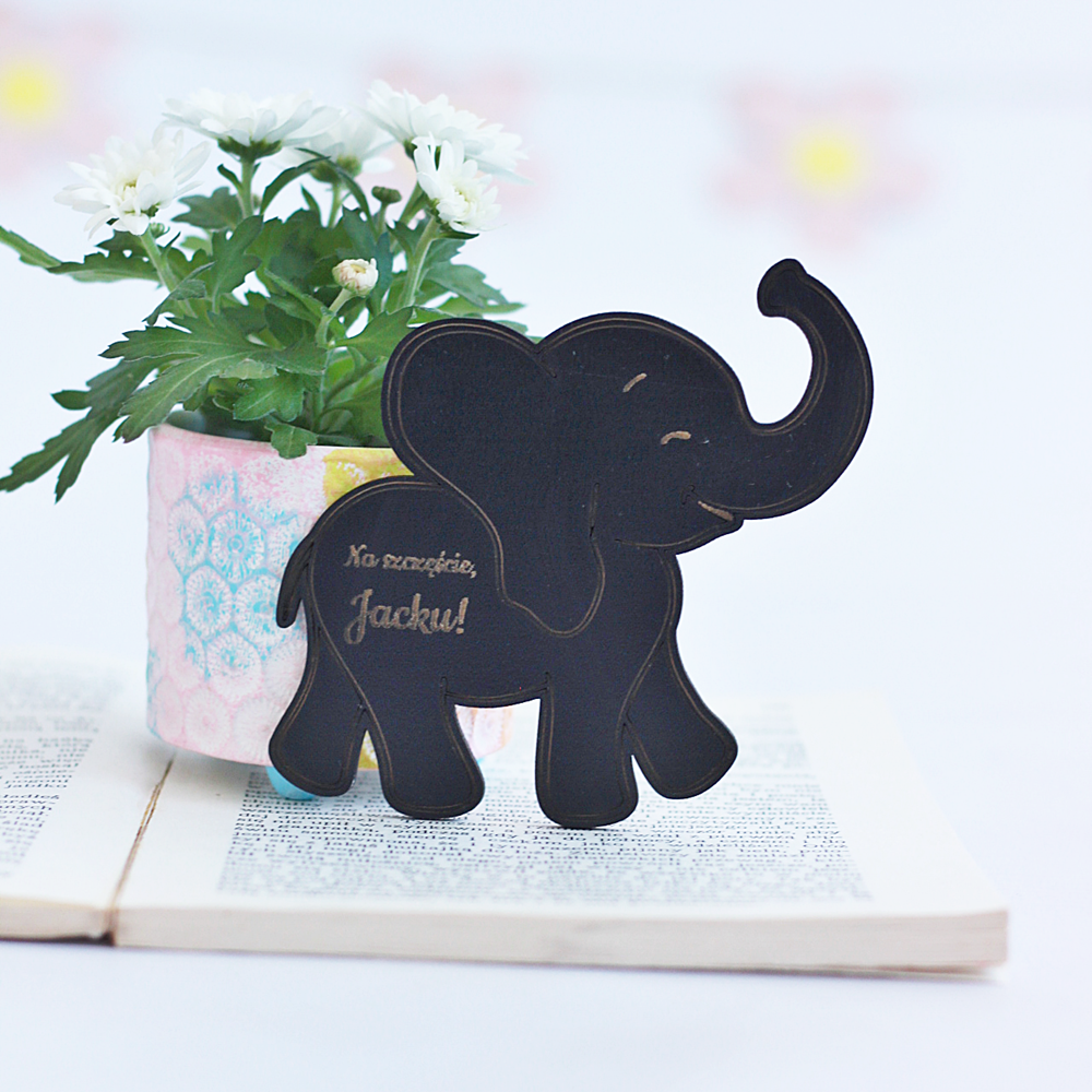 Słonik wykonany ze sklejki, białej lub czarnej płyty mdf.