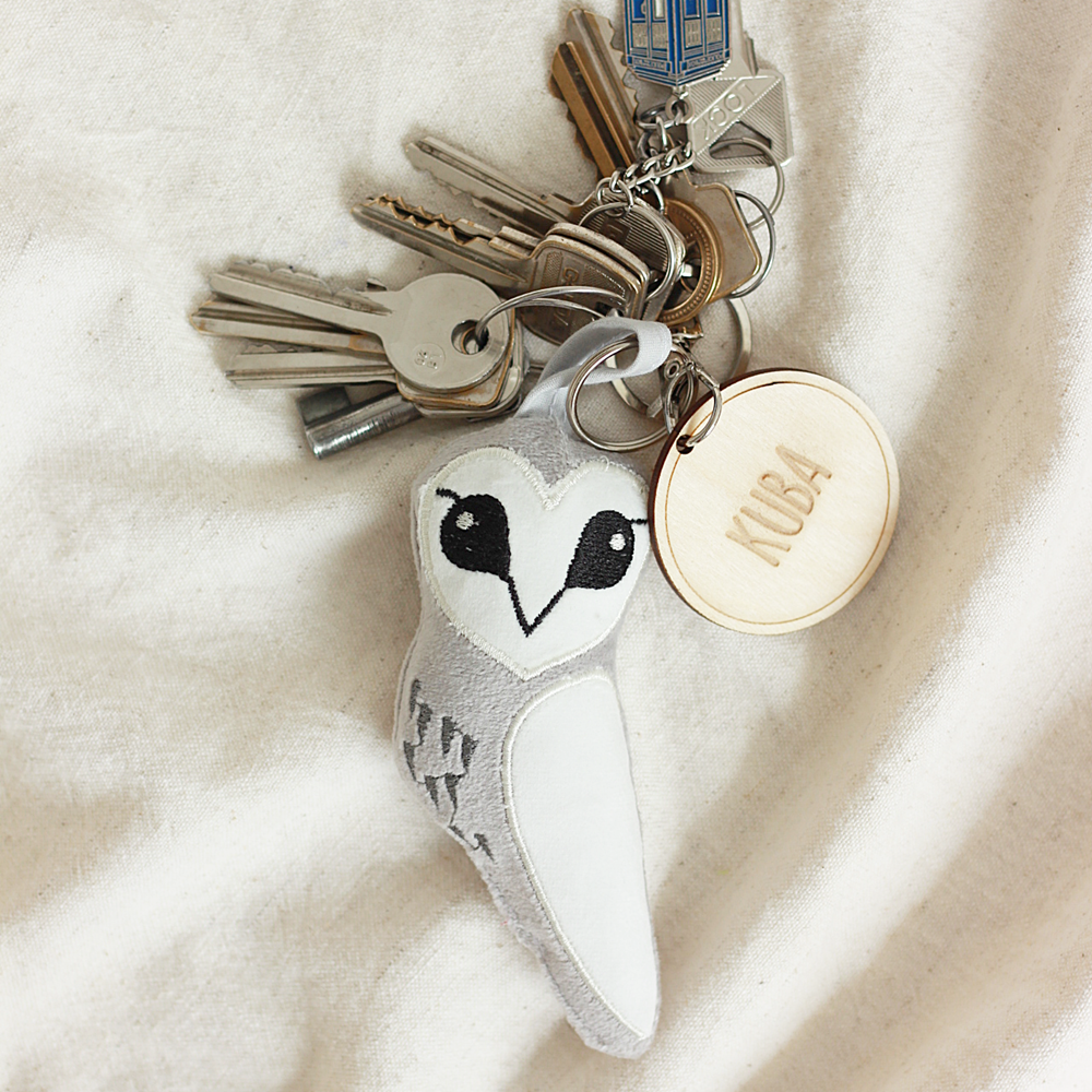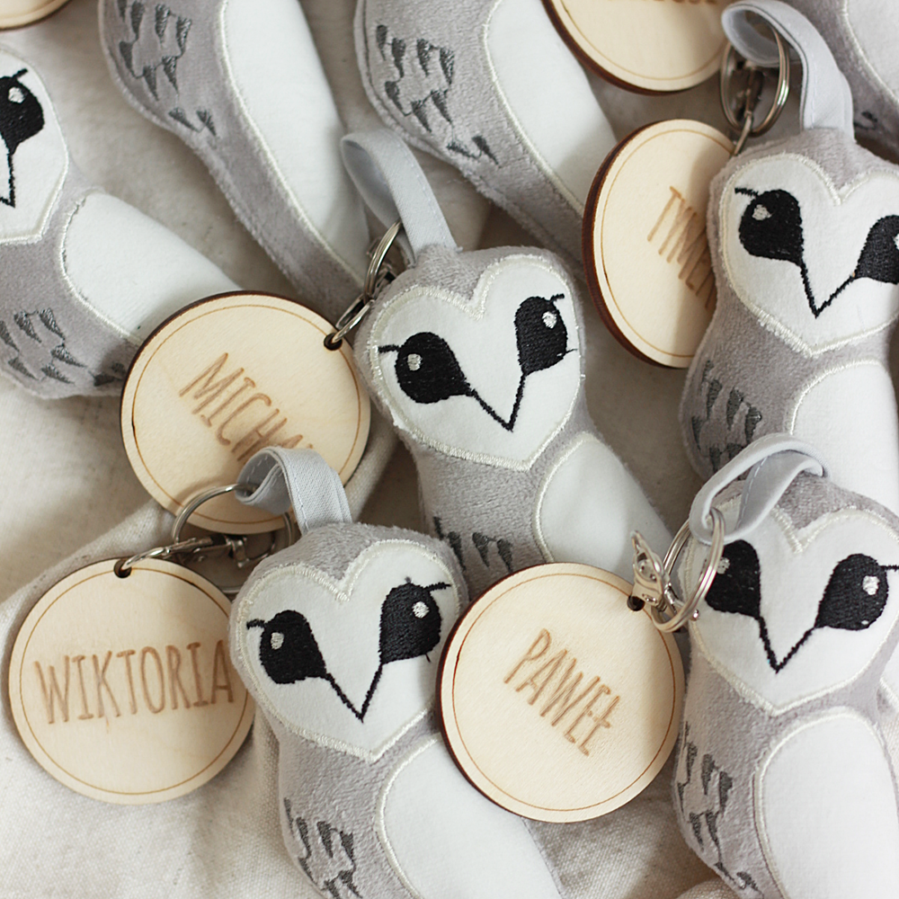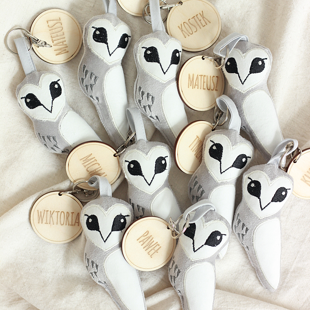 Sowa haftowana, brelok, zawieszka, personalizacja, sklejka - upominek dla uczniów/ zakończenie roku szkolnego