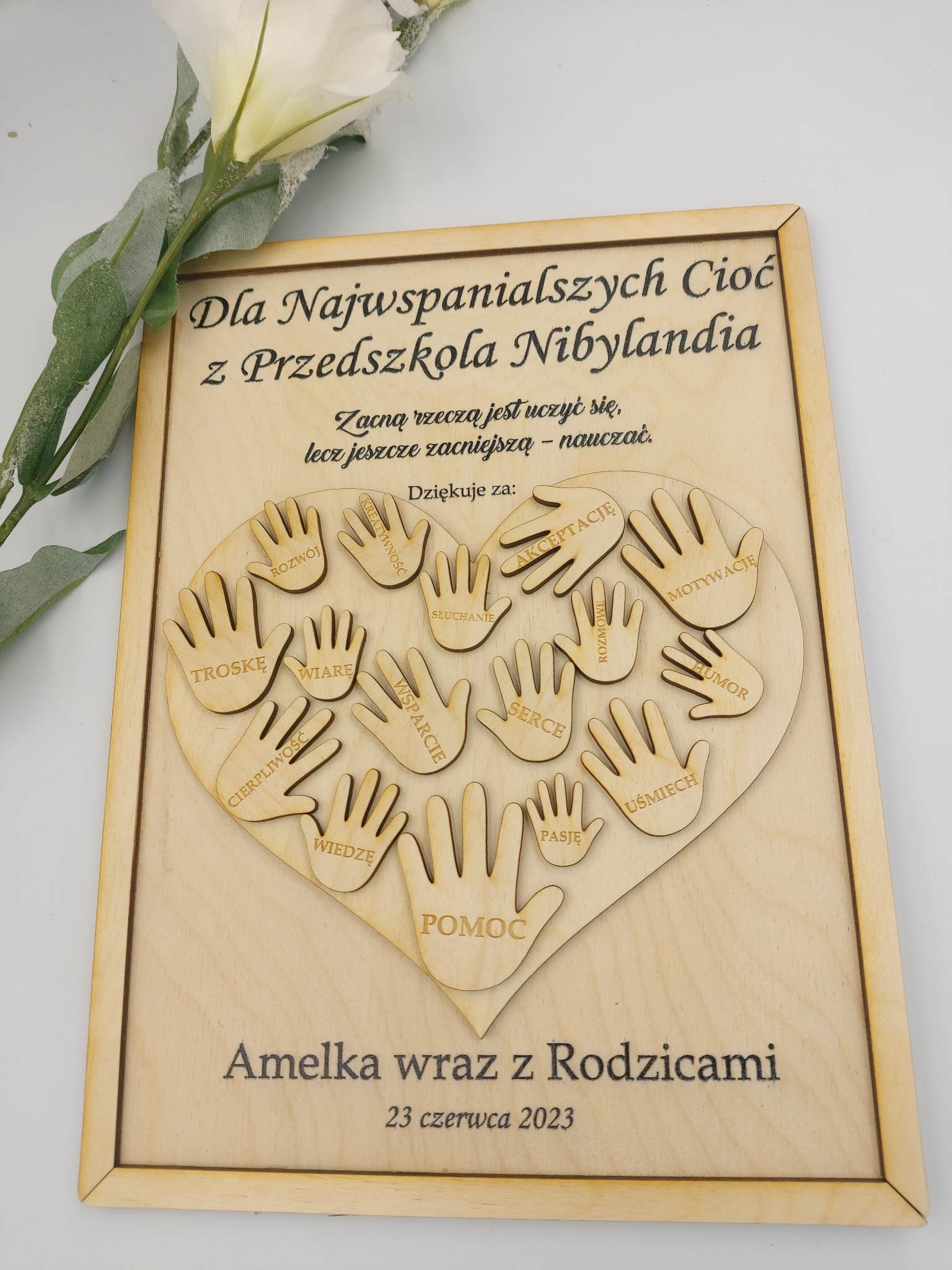 Tabliczka/ Ramka podziękowanie/ pamiątka, personalizacja, sklejka, łapki, dłonie - prezent Dzień Nauczyciela/ Zakończenie roku szkolnego
