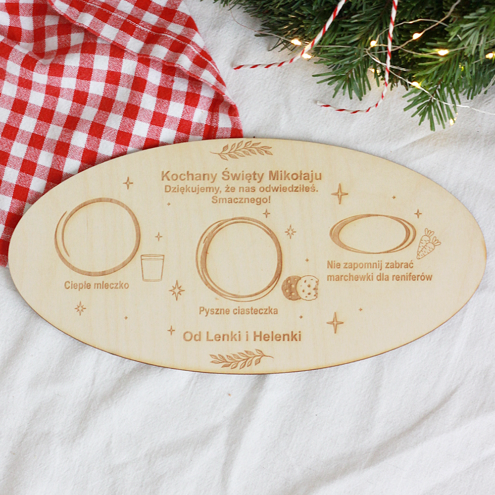 Taca/ talerz/ talerzyk dla Świętego Mikołaja/ grawer/ sklejka/ personalizacja - Mikołajki