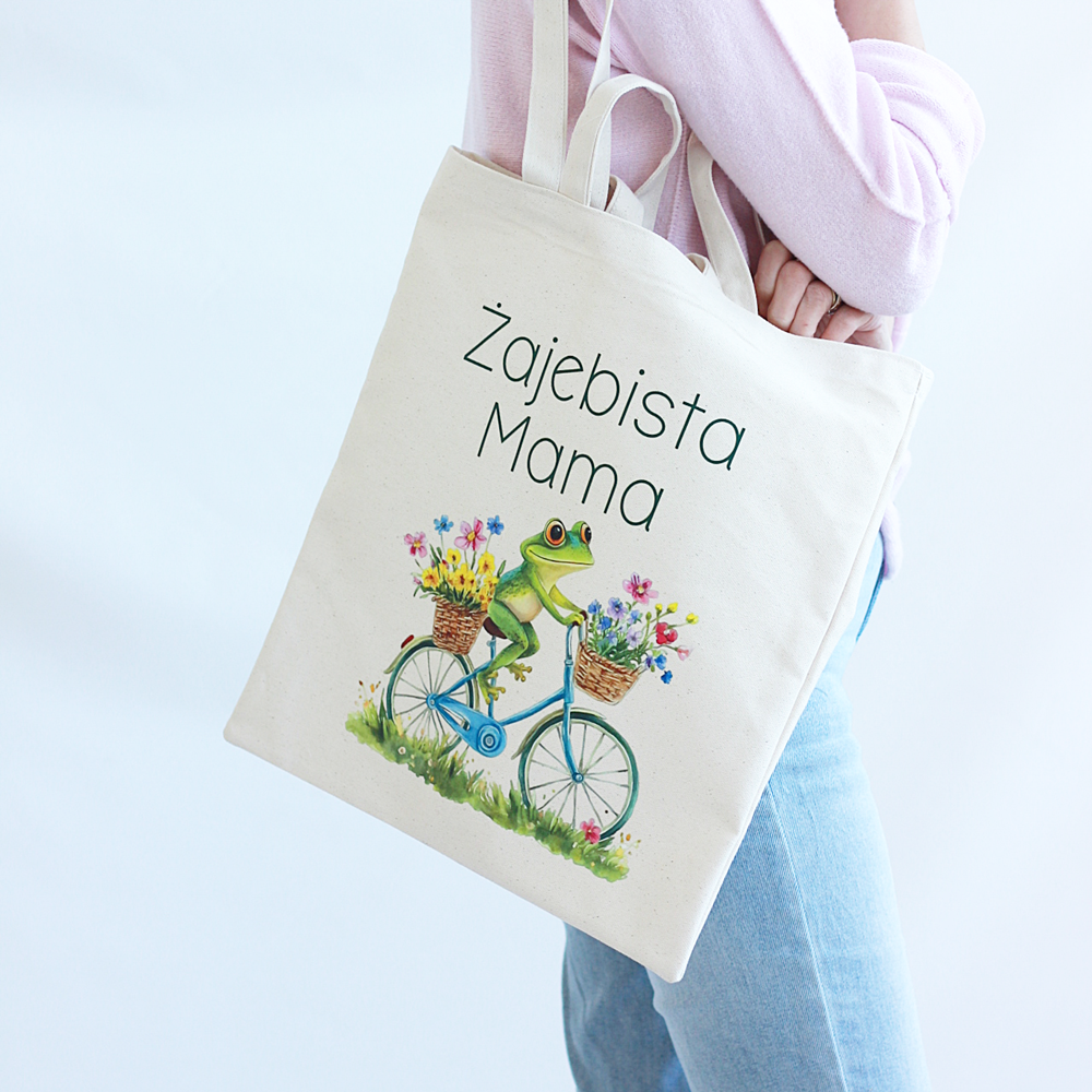 Stylowa torba bawełniana z nadrukiem „Żajebista Mama” to wyjątkowy, zabawny i praktyczny prezent na Dzień Mamy lub urodziny. Idealna na zakupy, spacer czy codzienne wyjścia.