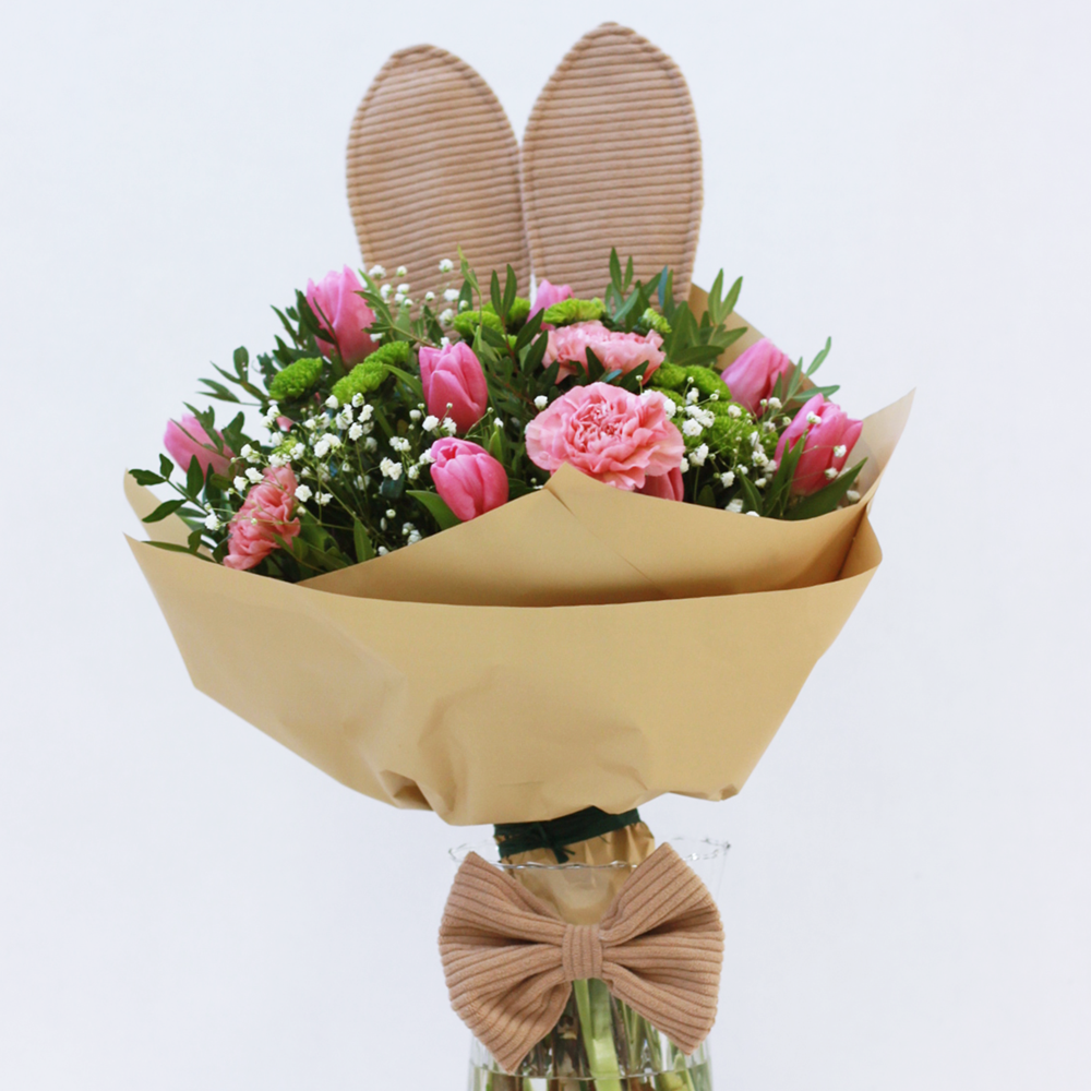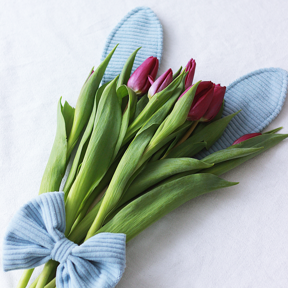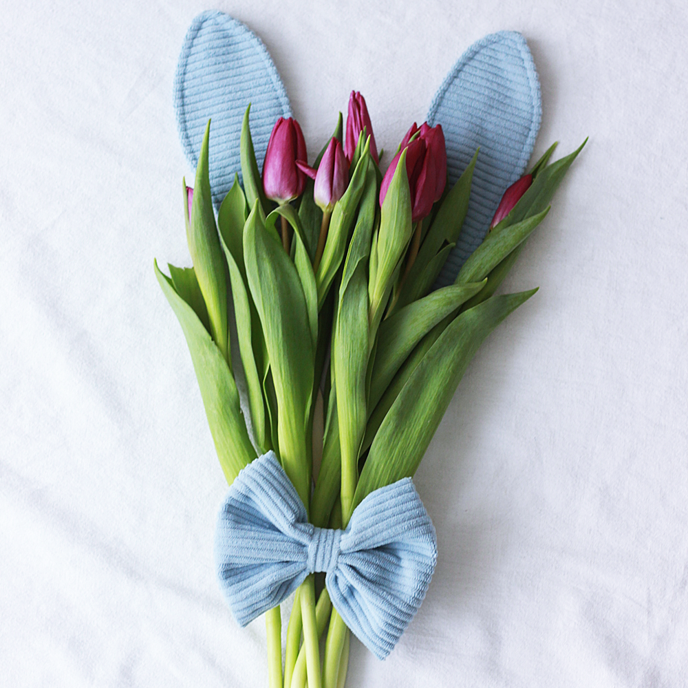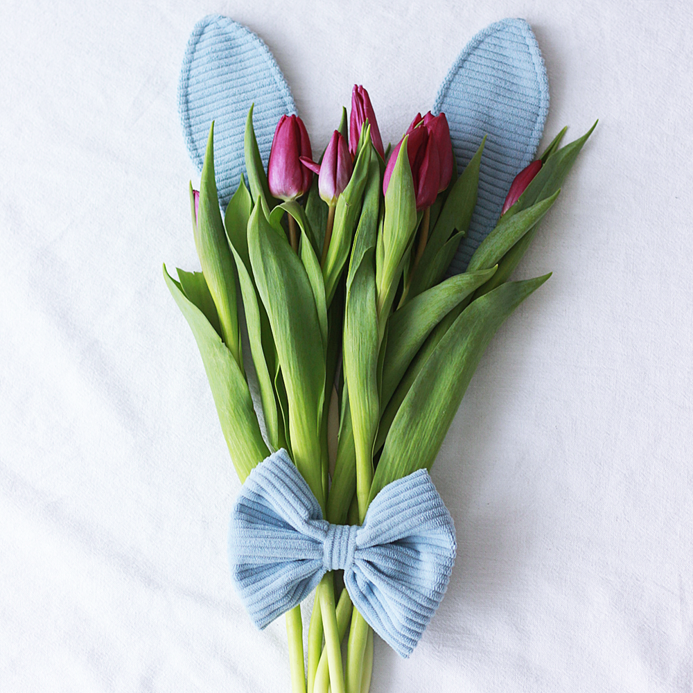 Uszy Zająca z Kokardą – Dekoracja Wielkanocna do Kwiatów