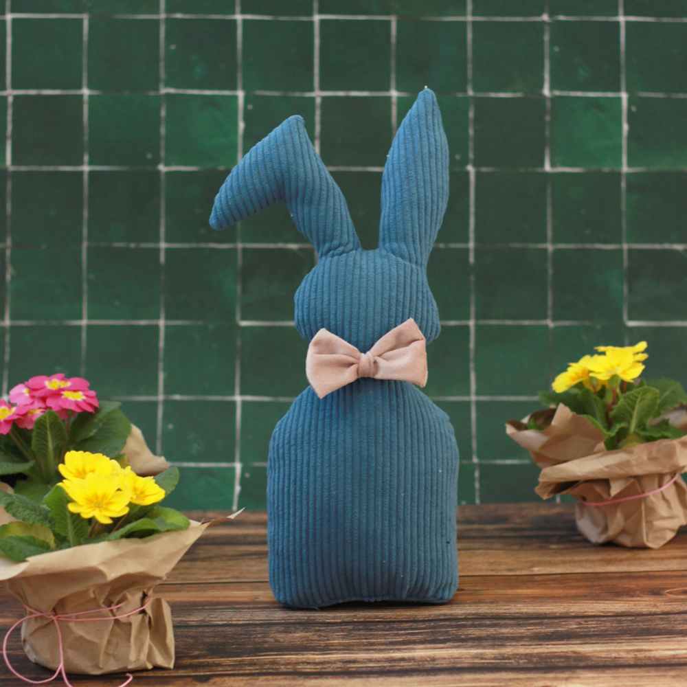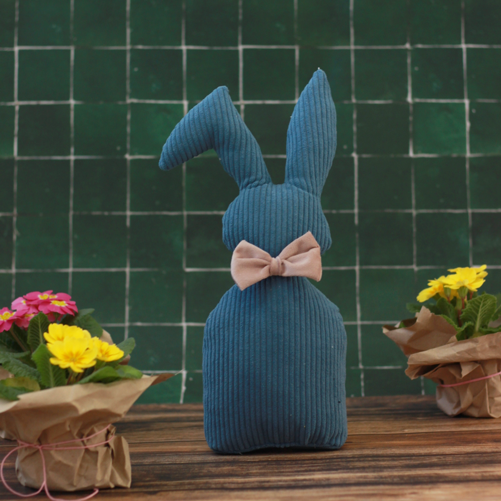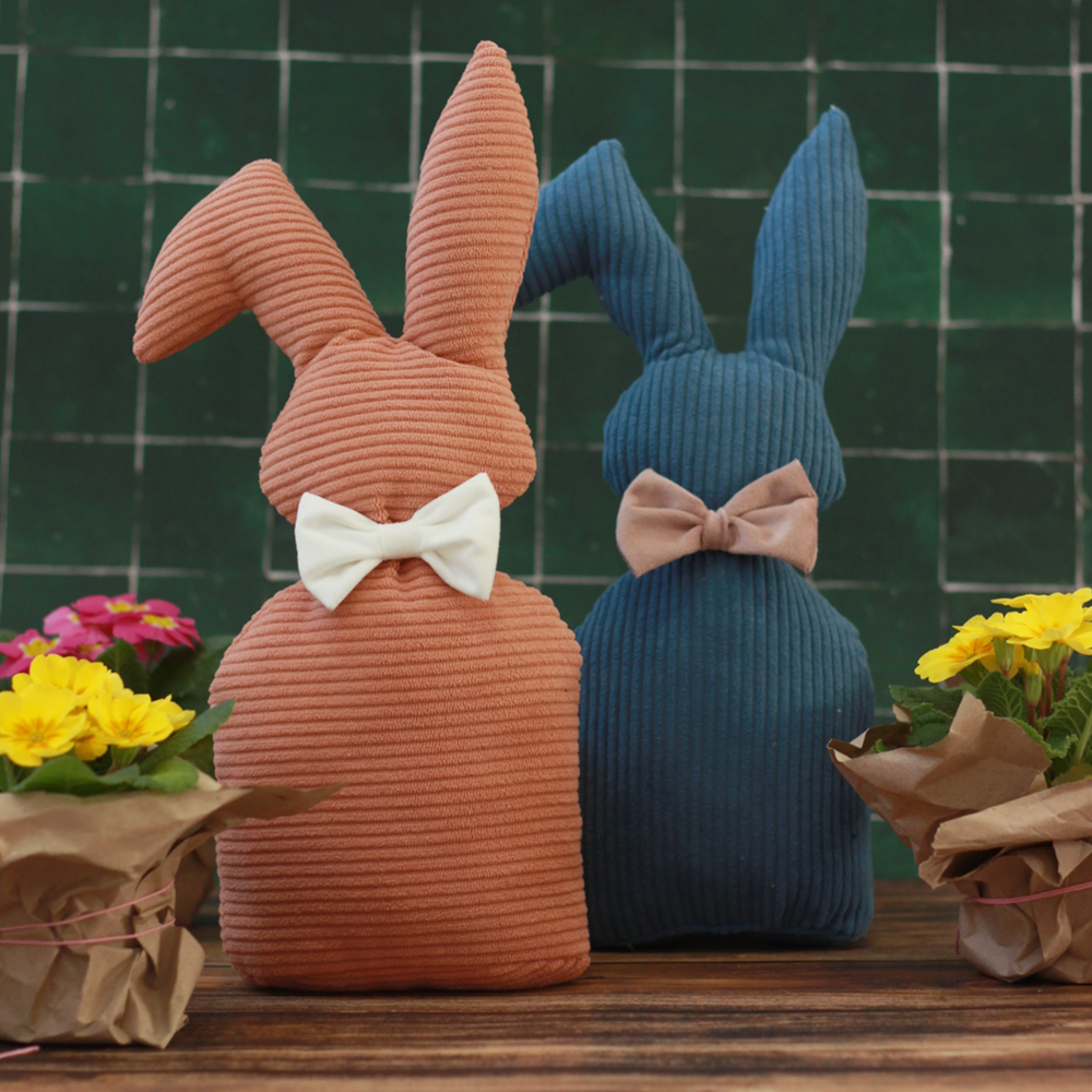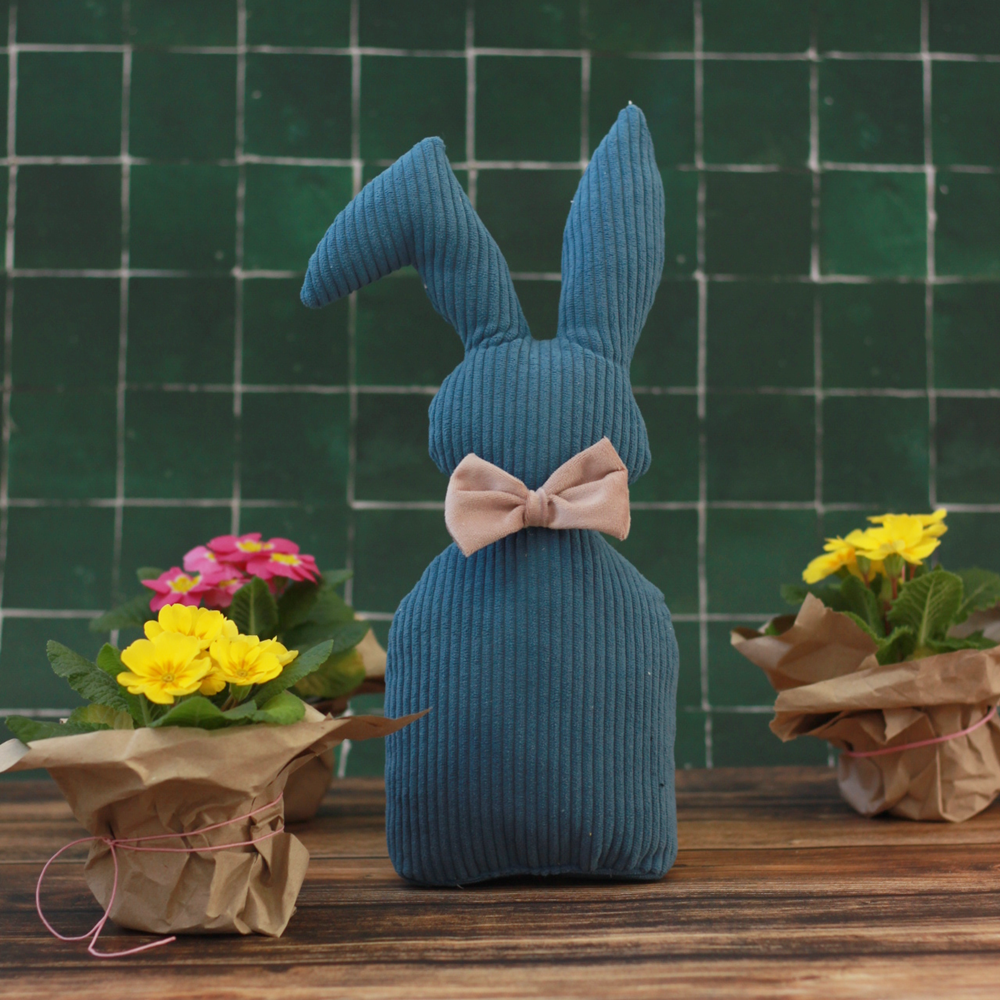 Uroczy zając wielkanocny z kokardą to piękna dekoracja, która wprowadzi do Twojego domu wiosenny i świąteczny klimat. Uszyty z materiału cord lub sztruks, doskonale sprawdzi się jako ozdoba stołu, komody, półki lub parapetu podczas Wielkanocy.