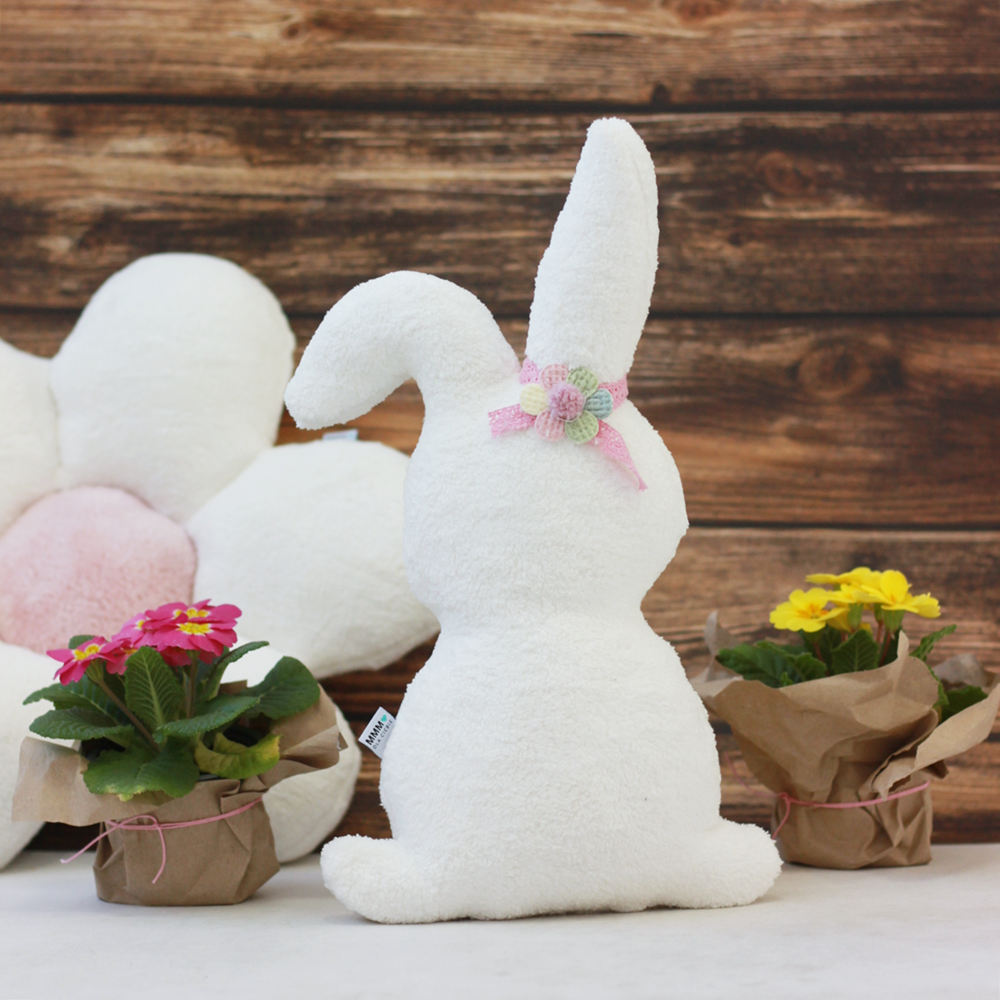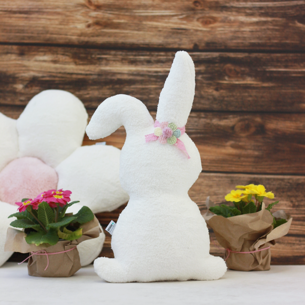 Uroczy zając z kwiatkiem to wyjątkowa dekoracja na Wielkanoc, która wprowadzi do Twojego domu wiosenny i świąteczny klimat. Uszyty z mięciutkiego materiału i wypełniony antyalergicznym wypełnieniem, pięknie prezentuje się jako ozdoba salonu, sypialni lub dziecięcego pokoju.