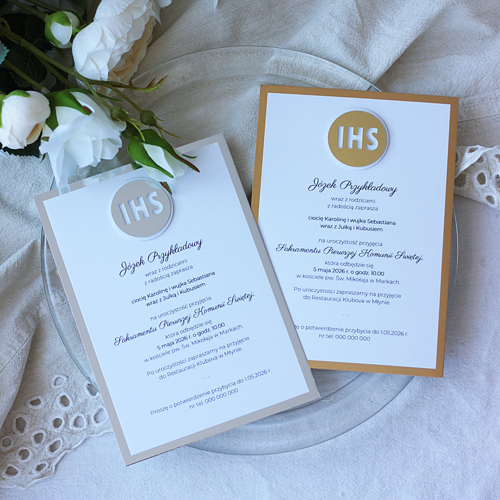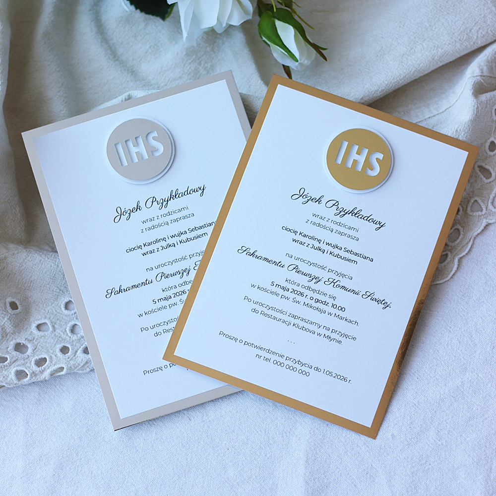 Zaproszenie na I Komunię Świętą – Personalizowane Złoto / Srebro