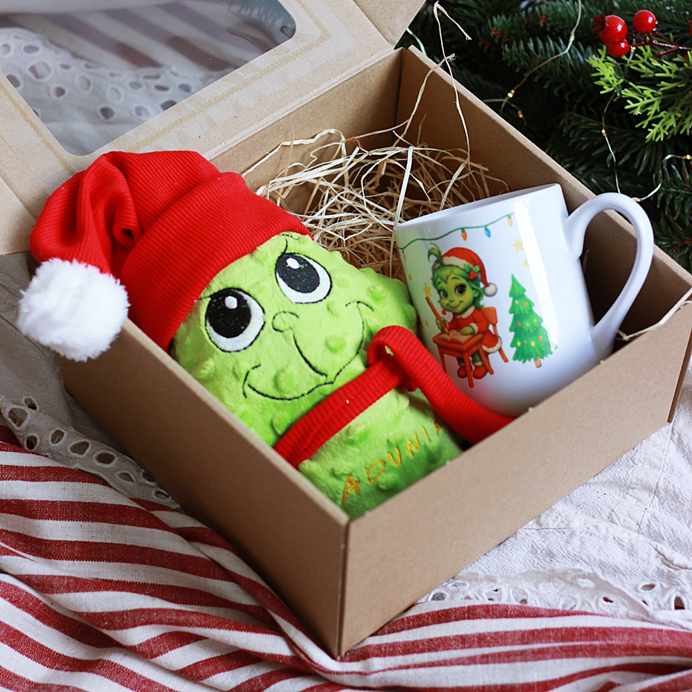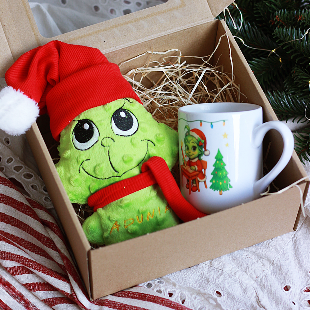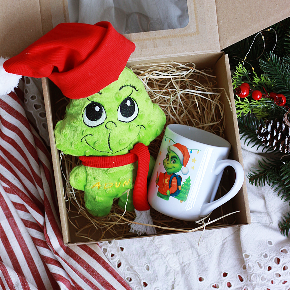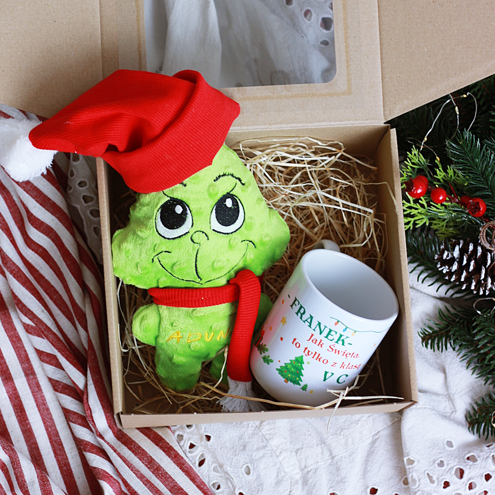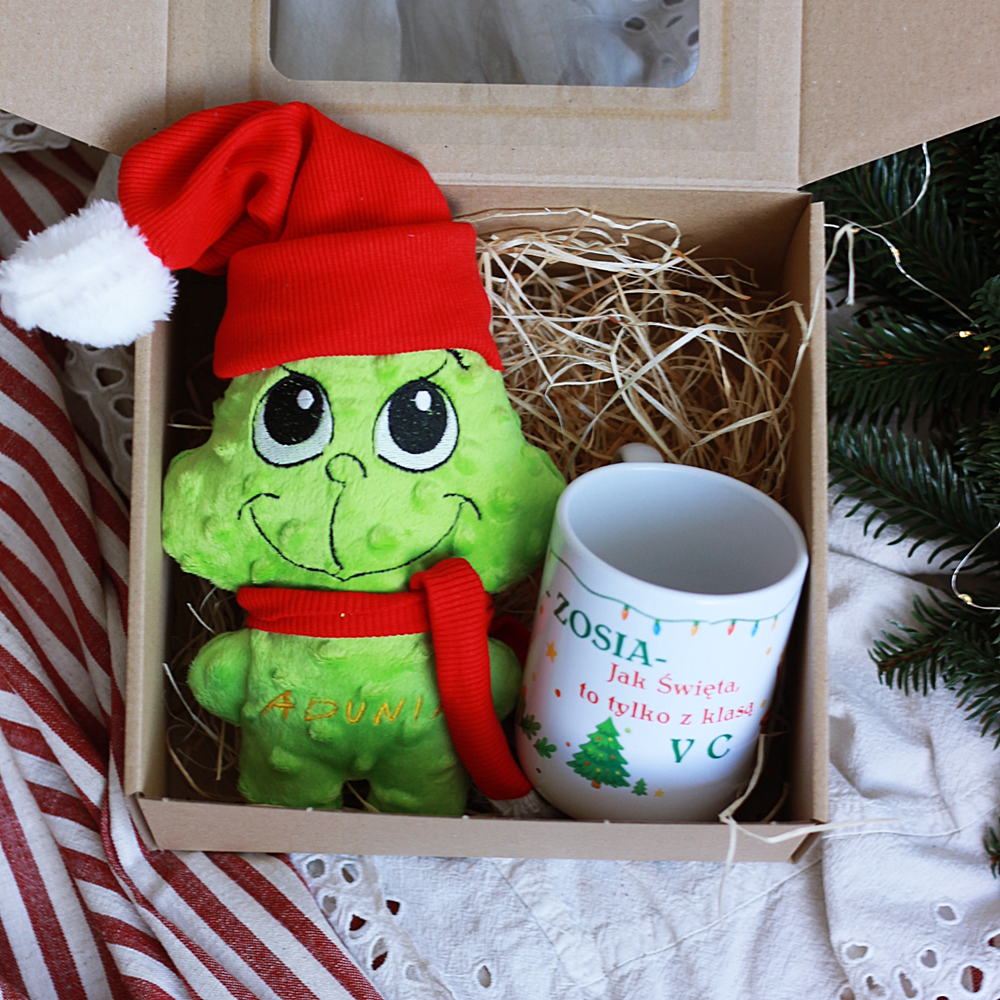 Zestaw Grinch/ kubek z nadrukiem personalizacja Jak Święta to tylko z klasą/ maskotka Grinch/ eco box - prezent Mikołajki/ Święta Bożego Narodzenia