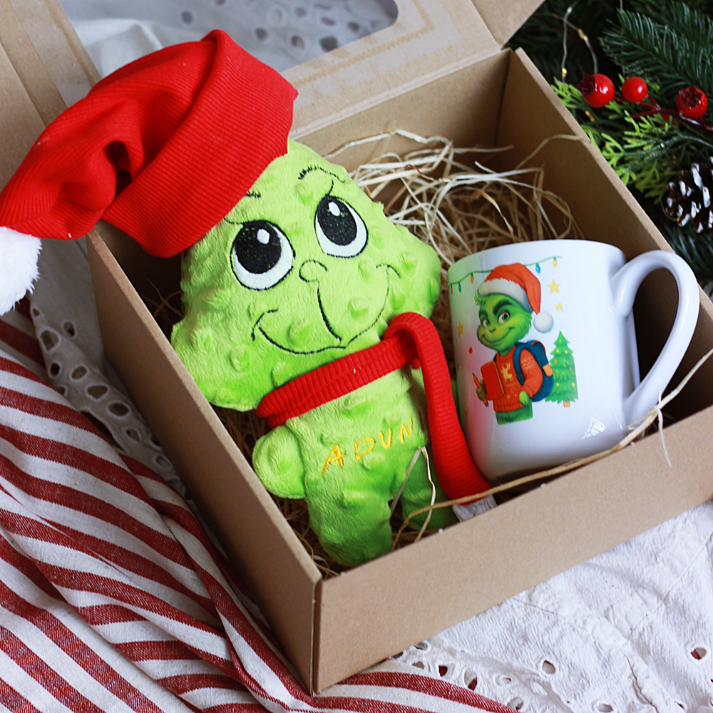 Zestaw Grinch/ kubek z nadrukiem personalizacja Jak Święta to tylko z klasą/ maskotka Grinch/ eco box - prezent Mikołajki/ Święta Bożego Narodzenia .