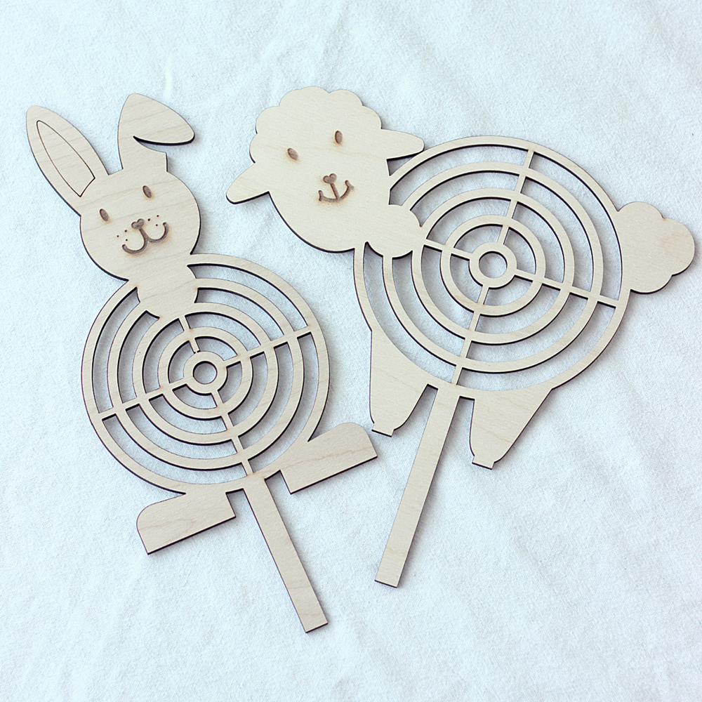 Zestaw kreatywny dla dzieci, sklejka, na piku, pik - Przeplotka. Zając, zajączek, owca, owieczka